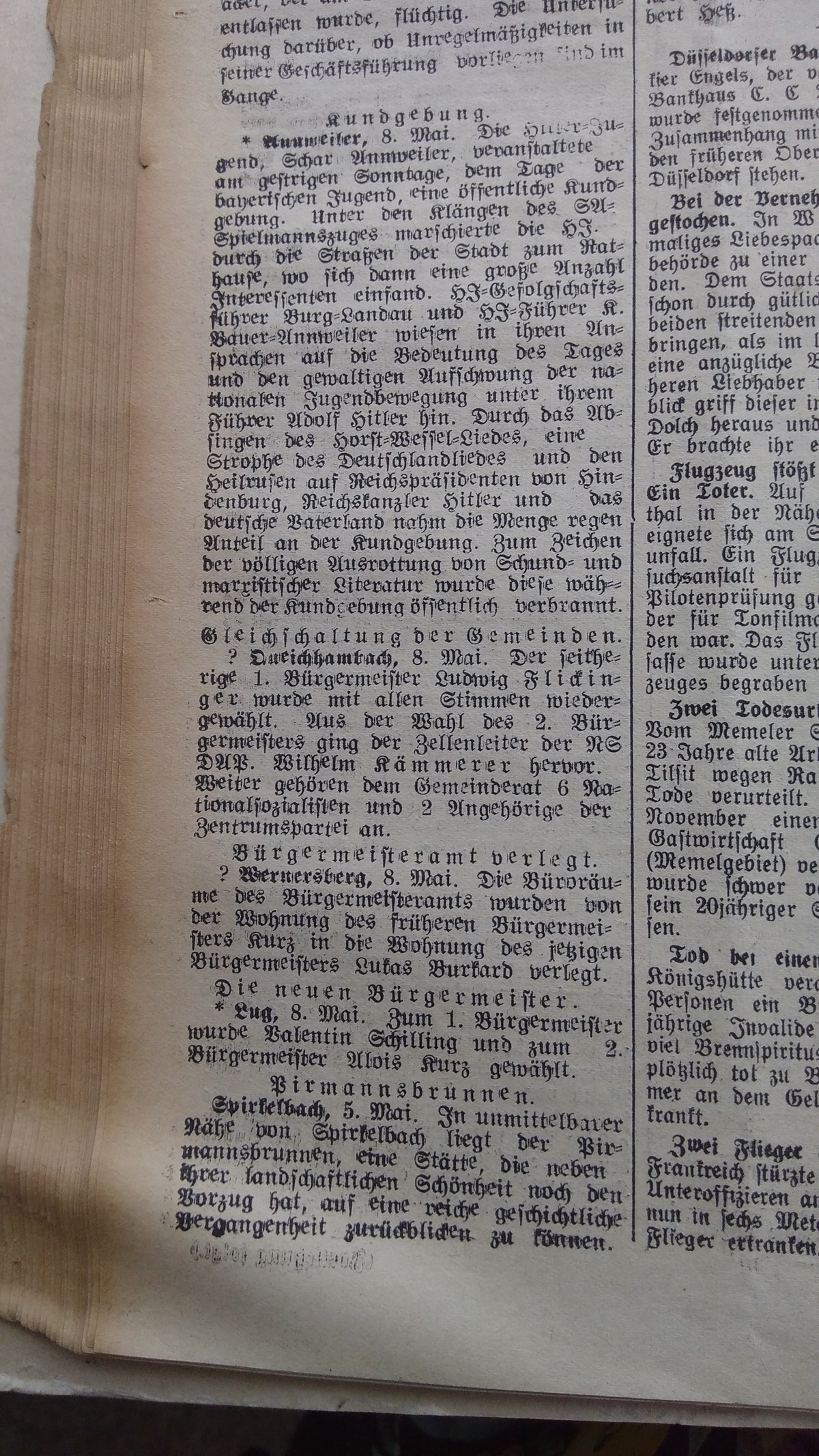 Schon im März 1933 wurde mit der Säuberung der Stadtbücherei begonnen. Immer wieder wurden neue Bestände an marxistischer und verfemter Literatur entdeckt. Am 8. Mai 1933 fand dann "in Anwesenheit einer großen Zuschauermenge" die Verbrennung der, aus der Stadtbücherei entfernten, Literatur statt.