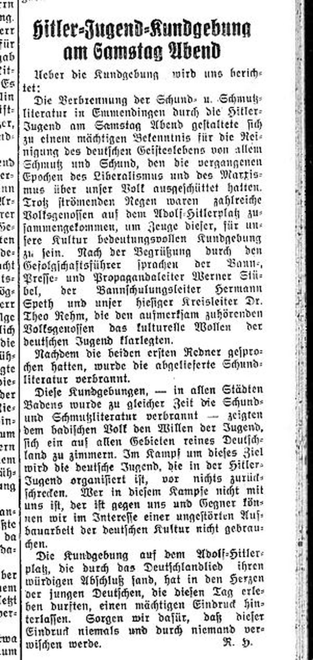 Bei strömenden Regen fand, im Rahmen der "Kampfwochen gegen Schmutz und Schund", die Bücherverbrennung durch die HJ statt.