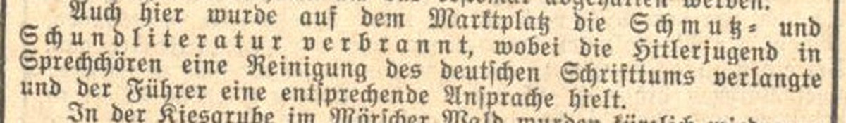 Auf dem Marktplatz in Ettlingen fand im Juni eine Bücherverbrennung durch die Hitlerjugend statt. Mehr ist leider nicht bekannt.