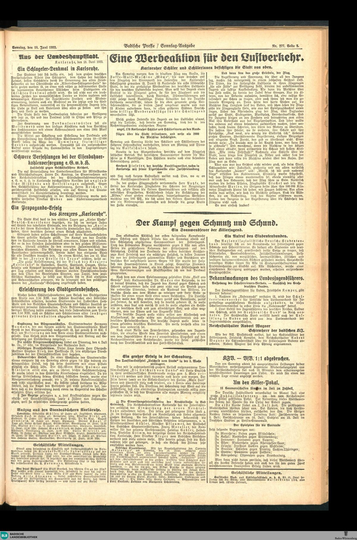 Badische Presse 18.6.1933 Bericht