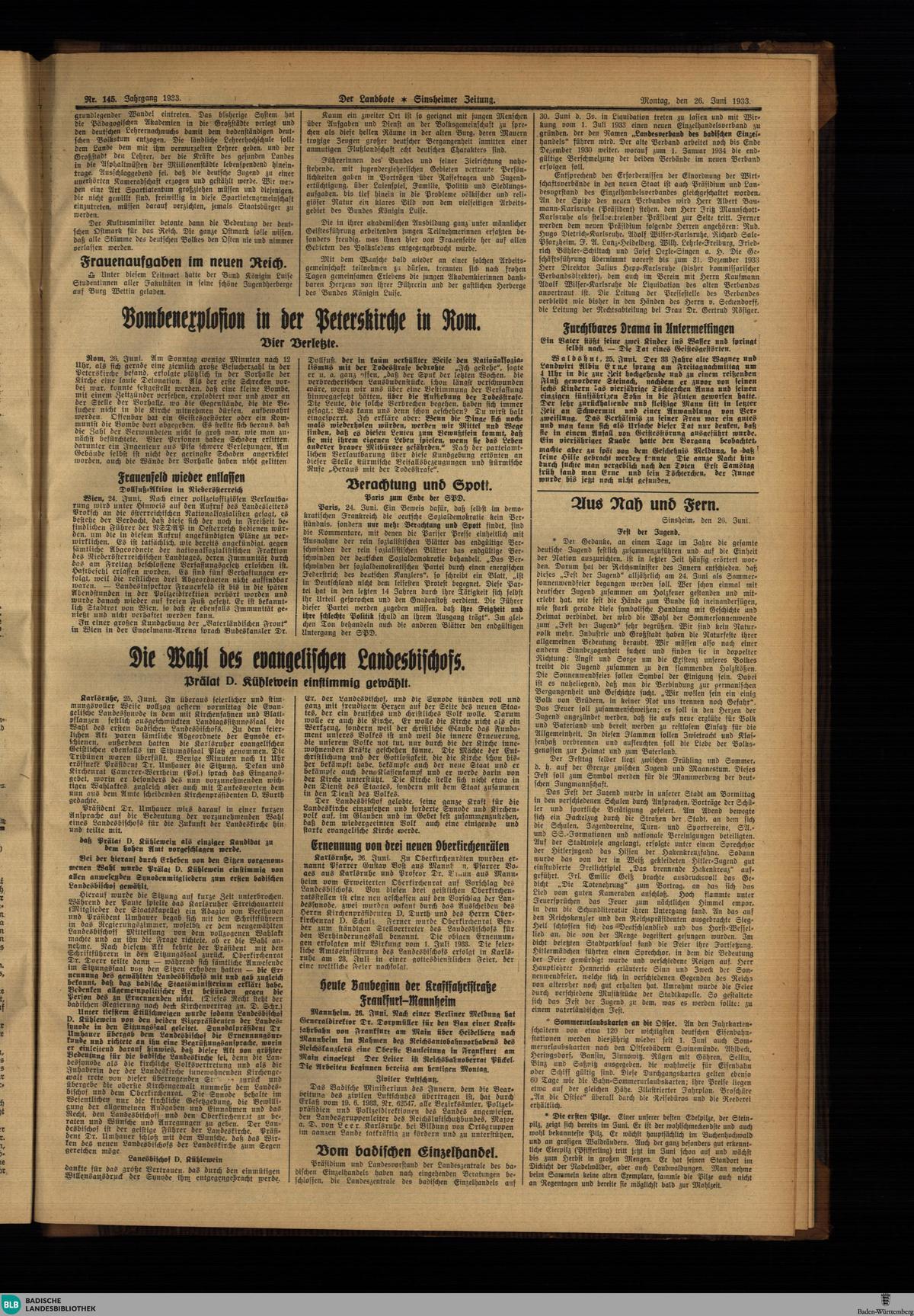 Der Landbote vom 26. Juni 1933
