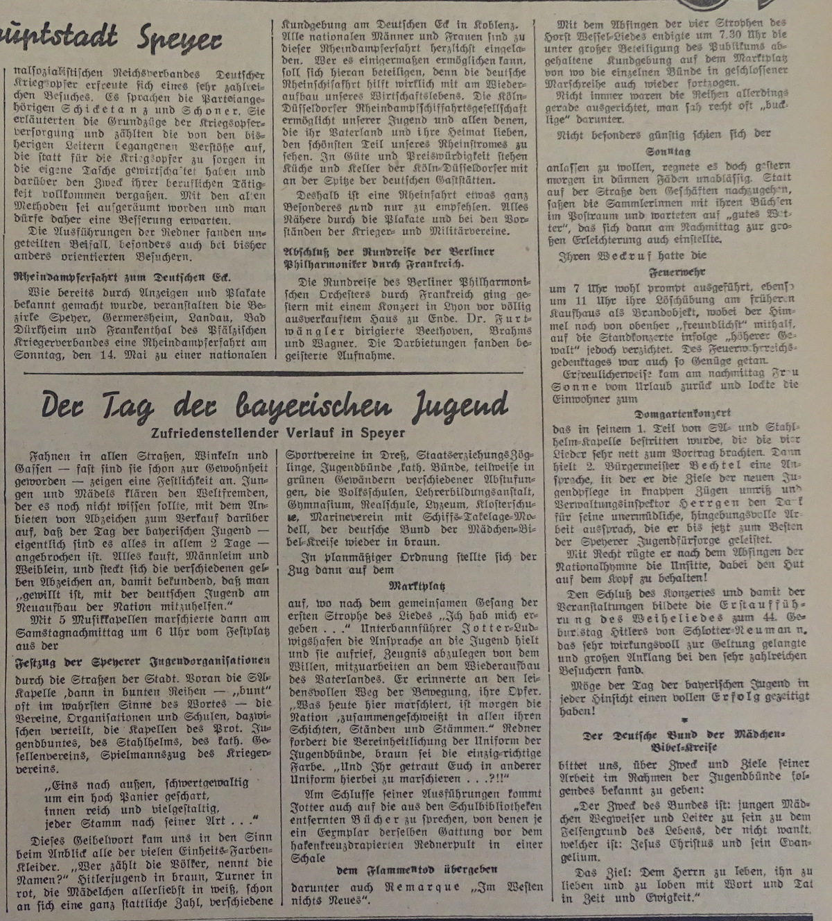 As part of the "Day of Bavarian Youth" a book burning took place on the market square in front of the town hall on May 6th.